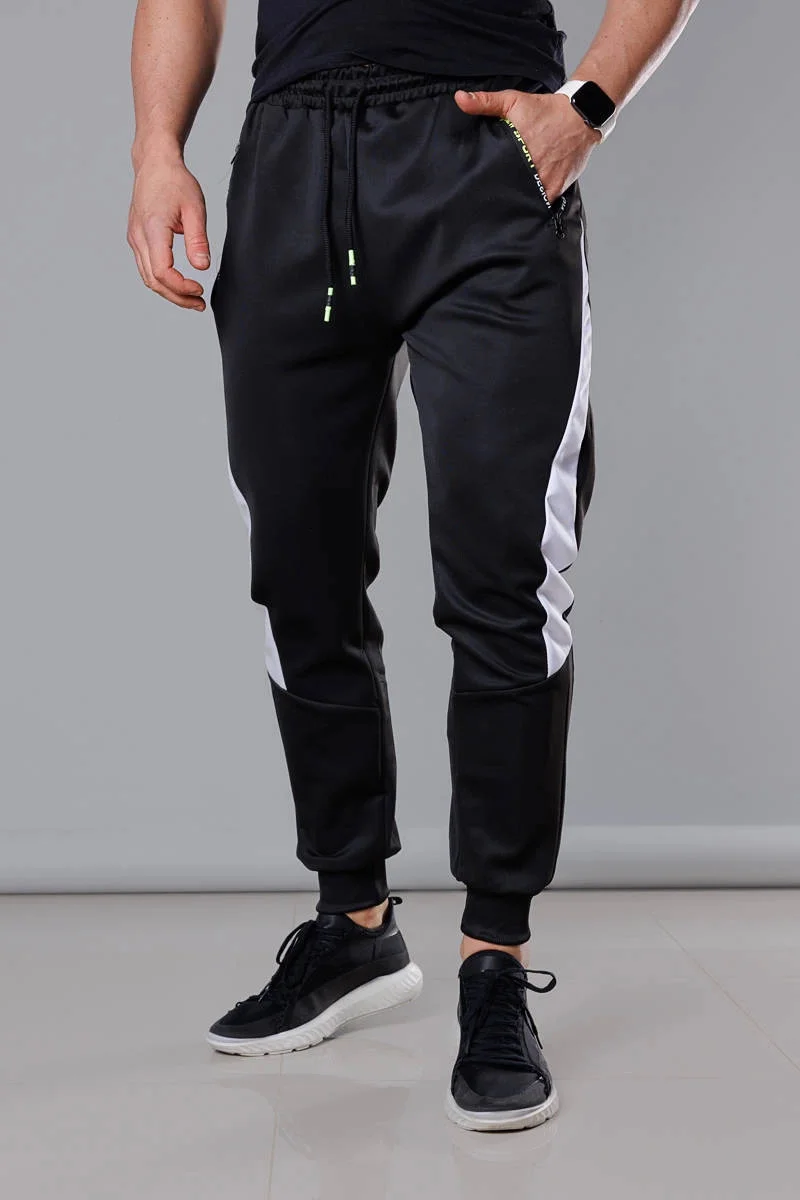 Černo-bílé pánské teplákové kalhoty se vsadkami (8K168)