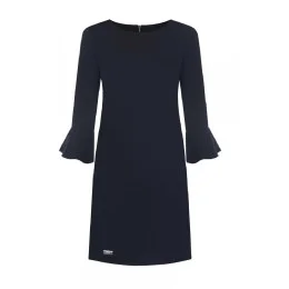 Jednoduché šaty s 3/4 rukávy zakončené volánem. Šaty mají zapínání na zip.