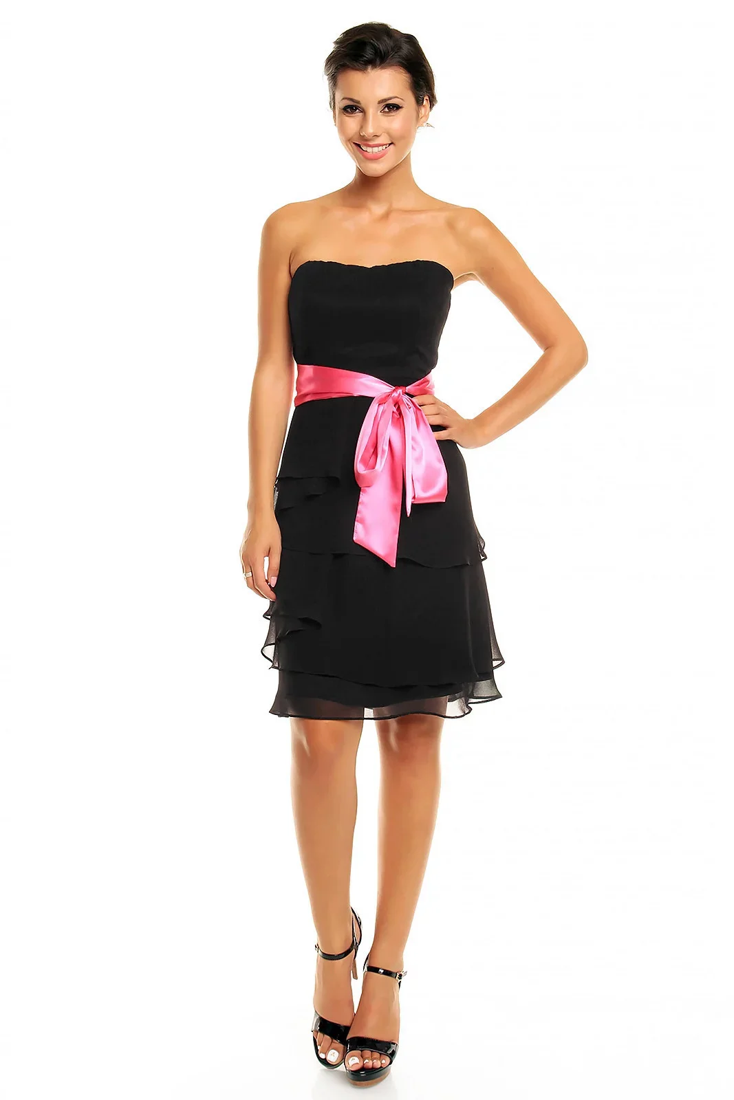 Společenské šaty korzetové značkové MAYAADI s mašlí a sukní s volány černé - Černá - MAYAADI