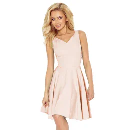 Společenské šaty luxusní s kolovou sukní středně dlouhé světle růžová - Růžová / XL - Numoco