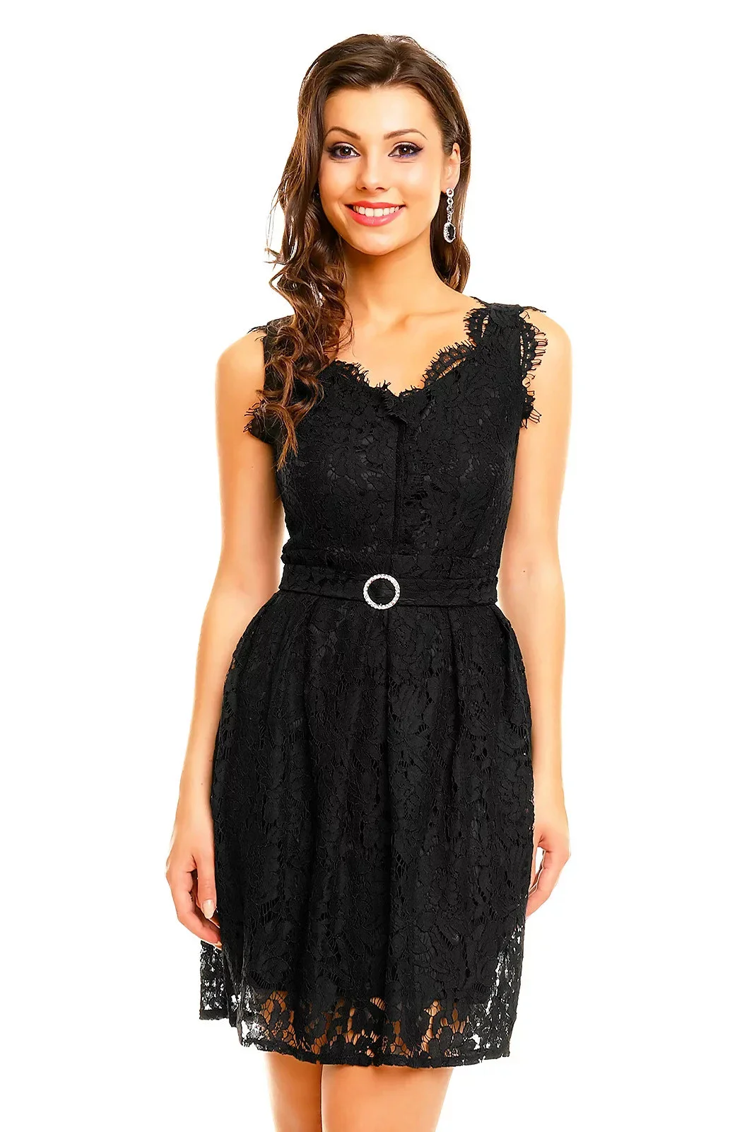 Společenské šaty MAYAADI Deluxe krajkové s páskem černé