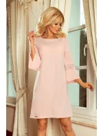 Šaty Margaret s rozšířenými rukávy a krajkovou vsadkou - velmi pohodlné - pastelově růžové. Značka numoco. Výroba Polsko