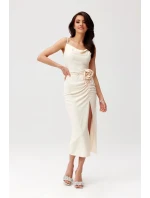 Dámské šaty SOKY SOKA na ramínka s šifonovou sukní dlouhé smetanově bílé - Bílá / XL - SOKY&SOKA