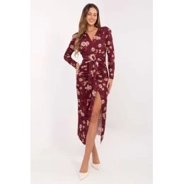 Elegantní úzké šaty jsou ideální volbou na speciální příležitosti. Vyrobené z příjemné směsi viskózy a polyesteru se krásně přizpůsobují postavě, zdůrazňují ženské tvary. Model má midi délku a dlouhý rukáv, co mu dodává eleganci. Na přední straně je efektní rozpark sahající až k hýždím, který jemně zdůrazňuje nohu a dodává celku smyslný charakter. Přesýpací výstřih opticky zjemňuje krk a zdůrazňuje dekolt, ozdobné záhyby s kovovým prvkem jsou elegantním akcentem, který přitahuje pozornost. Šaty s květinovým vzorem se skvěle hodí na večírky, recepce a formální události, spojují ženskost, eleganci a pohodlí v jednom.