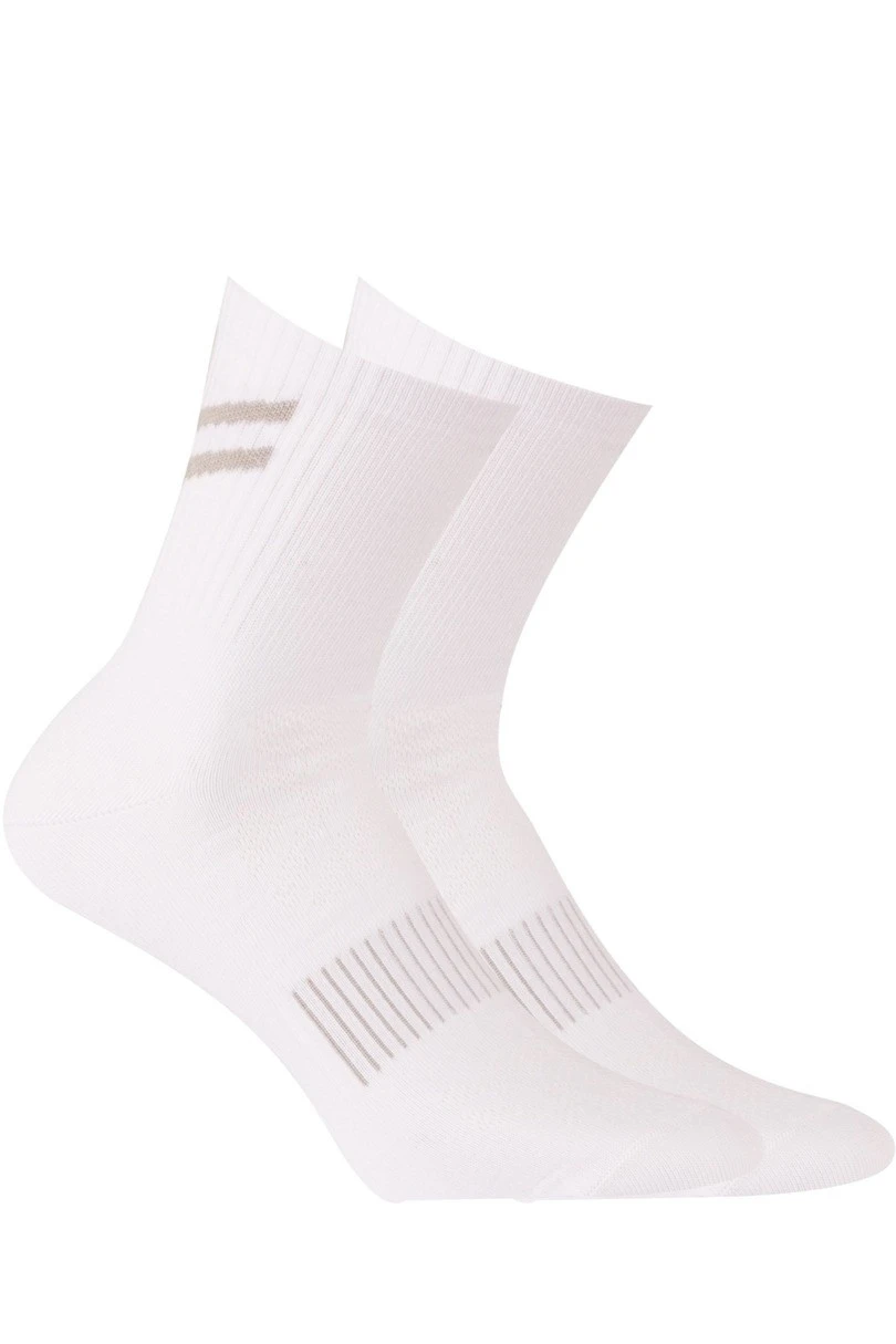Pánské sportovní ponožky se vzorem stříbrných iontů. Výrobek se vyznačuje systémem stahování, který zabraňuje pohybu výrobku na noze, kanálkovými zónami pro odvod přebytečné vlhkosti a tepla, jakož i prodyšností a plochým bosem.