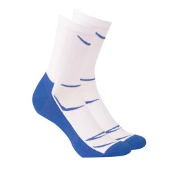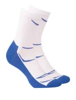 Bavlněné krátké sportovní ponožky s froté v chodidle a stříbrnými ionty. Výrobek se vyznačuje systémem stahování, který zabraňuje sklouzávání výrobku na noze, kanálkovými zónami pro odvod přebytečné vlhkosti a tepla, prodyšností a plochým šéfem.