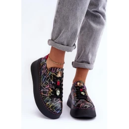 Sportovní obuv značky Maciejka. Vyrobeno z přírodní kůže s důrazem na detail. Stojí na masivní platformě. Klasický šněrovací model se zpevněným podpatkem. Zaoblená špička. Měkká stélka pro pohodlí během používání. Na tkaničkách je připevněna malá bižuterní ozdoba.