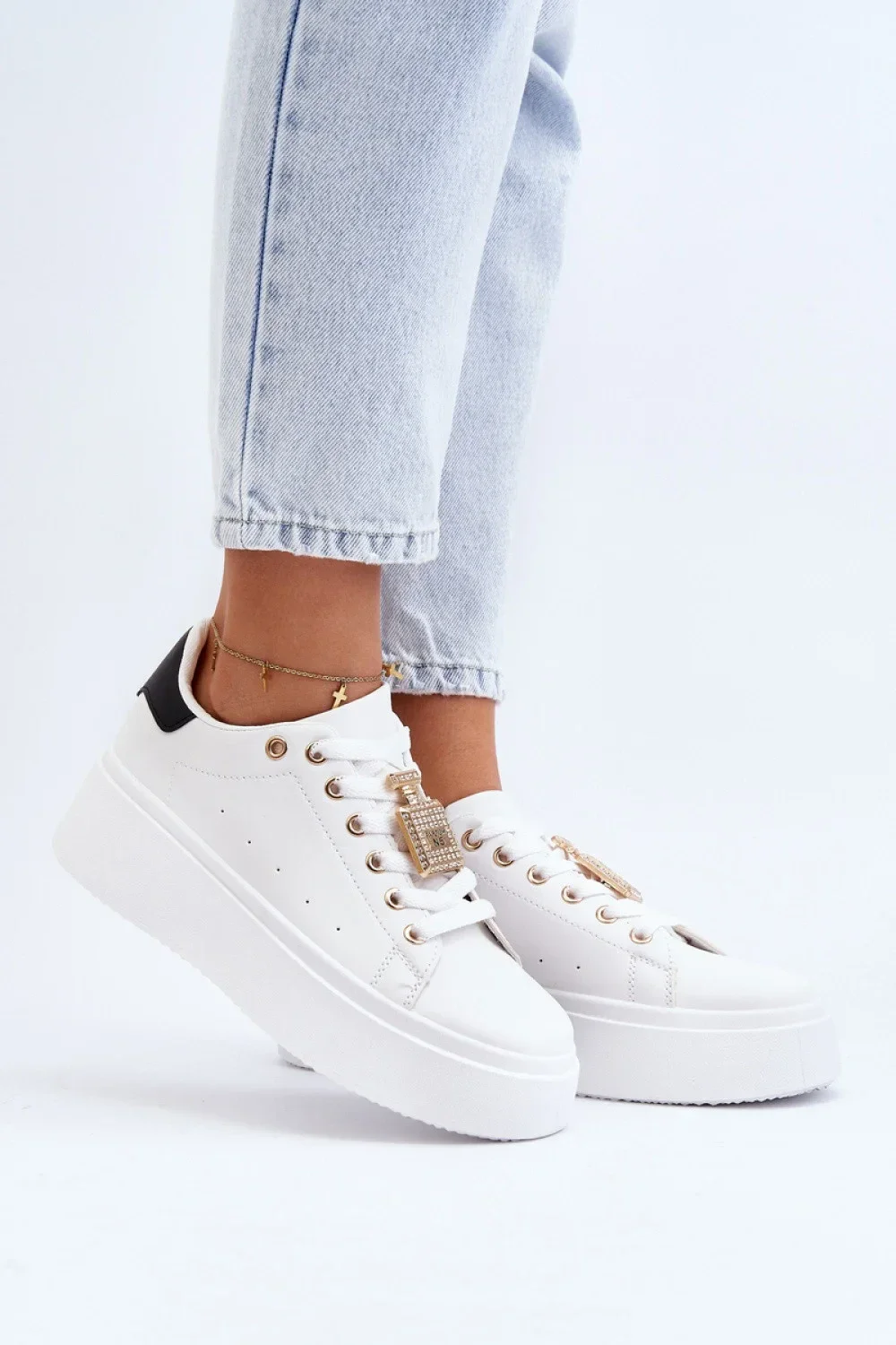 Dámská sportovní obuv byla vyrobena z ekologické kůže. Stojí na platformě. Tento model je klasicky šněrovací. Budou ideální jako každodenní obuv, do práce nebo do školy. O vaše pohodlí se postará pěnová stélka. Na tkaničkách ozdoba v podobě parfému. Tento model by neměl chybět ve vašem šatníku!