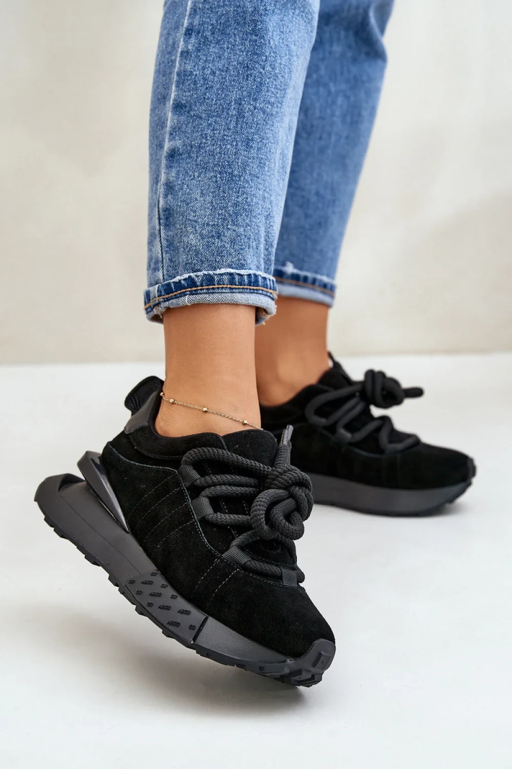 Tenisky pro ženy vyrobené z přírodního semiše. Usazeny na platformě. Tento model se vyznačuje tlustým šněrováním. Platforma poskytuje další pohodlí a lehkost při chůzi a zároveň přidává pár centimetrů na výšce. Ideální pro každodenní outfity i více příležitostné sestavy. Vyberte si je, abyste zdůraznili svůj jedinečný styl a mohli si užít pohodlí po celý den.