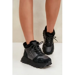 Dámské tenisky vyrobené z vysoké kvality přírodní kůže jsou skvělou volbou na chladnější dny. Model umístěný na módní platformě nejen zajistí stylový vzhled, ale také pohodlí při nošení. Vyráběné s měkkým kožichem, zaručují teplotu během zimních procházek. Zapínání na zip a šněrování umožňuje ideální přizpůsobení noze. Teplé, pohodlné a praktické, skvělé pro každodenní stylizace.
