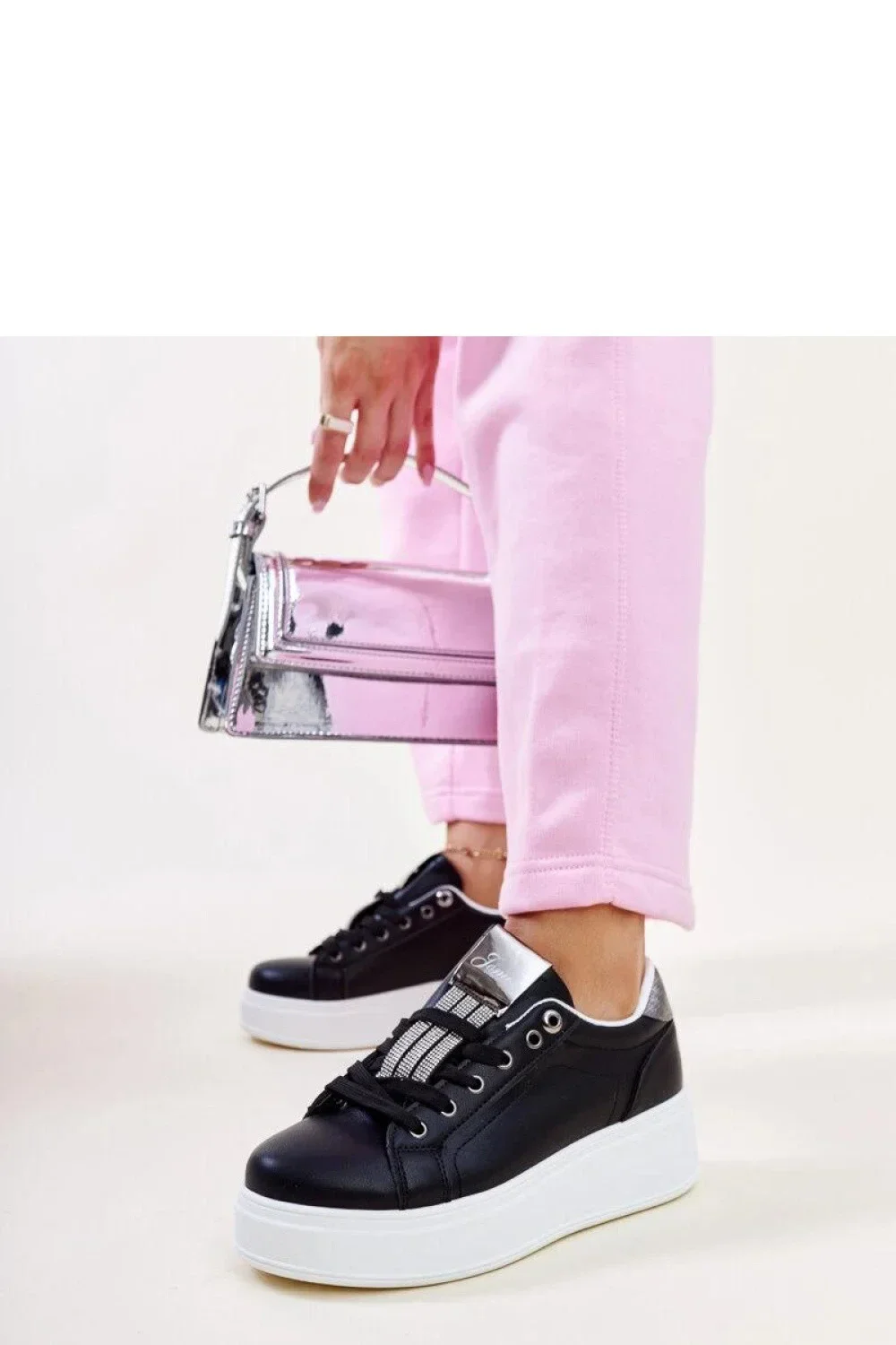 Černé tenisky s cirkony Maurizia jsou vyrobeny z vysoce kvalitní gumy, což z nich činí nejen stylové, ale také pohodlné a odolné. Jejich nízký střih a zaoblený nos pak znamenají, že se hodí k mnoha různým stylizacím, jak casualovým, tak elegantním. Tyto boty jsou skvělou kombinací klasiky a modernosti - progresivní design a trendy detaily je činí absolutním hitem sezóny. Už neváhejte a přidejte je do své sbírky hned teď! Vnější materiál: ekologická semišová kůže Podšívka: žádná Materiál podrážky: guma Barva podrážky: bílá Zavírání: na šněrování Kolekce: Jaro/Léto