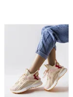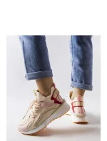 Bežovo-růžové textilní tenisky Begins jsou ideální volbou pro všechny ženy, které si cení pohodlí a módního vzhledu. Tyto dámské tenisky mají šněrování, díky kterému si je můžete přizpůsobit svým individuálním preferencím. Bez ohledu na to, zda preferujete volnější nebo více přiléhavé boty, tyto tenisky se skvěle hodí k vašemu stylu. Charakteristickým prvkem těchto bot je kulatý špičatý konec, který jim dodává jemnost a ženský šarm. Skvěle se hodí jako doplněk každodenních outfitů, jak sportovních, tak městských, dodávají jim trendy a módní charakter. Díky bežovo-růžovým teniskám Begins budete vždy trendy a ve stylu. Tenisky jsou vyrobeny z vysoce kvalitního vnějšího materiálu - textilu, a podrážka je vyrobena z hnědé gumy. Šněrování zajišťuje ideální přizpůsobení noze. Tyto tenisky určitě podtrhnou váš jedinečný vkus a zároveň vám zajistí pohodlí a sebevědomí každým krokem. Ideální na jaro a léto!