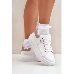 Stylové dámské tenisky vyrobené z ekologické kůže. Umístěné na platformě. Zaoblené špičky. Měkká pěnová vložka navíc potažená materiálem zajistí pohodlí na každém kroku. Tento model skvěle doplní každodenní stylizace!