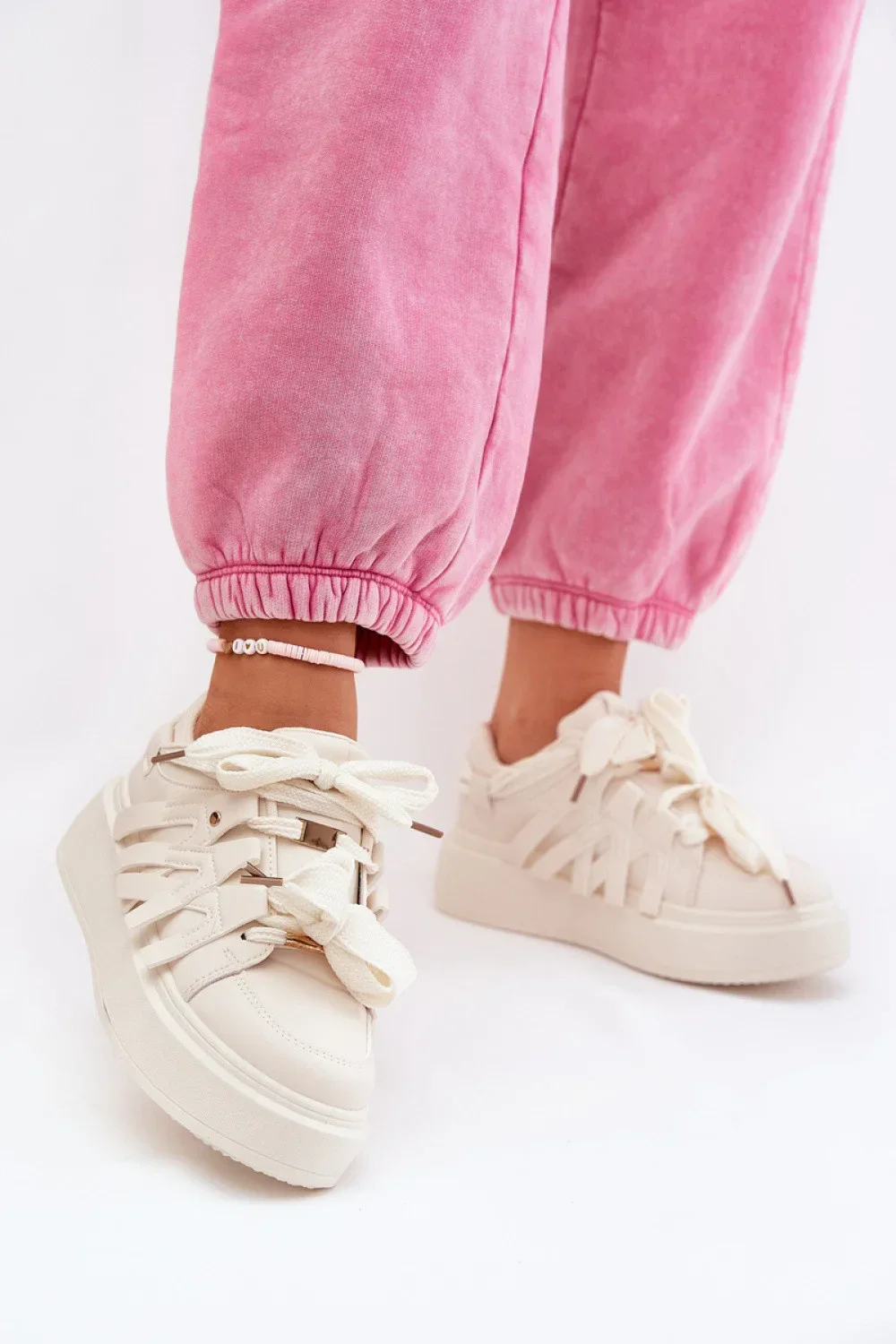 Dámské tenisky jsou vyrobeny z ekologické kůže. Vyznačují se pevným šněrováním, které umožňuje ideální přizpůsobení bot šířce nohy. Tyto boty jsou umístěny na platformě. Pěnová vložka poskytuje pohodlí a pohodlí při nošení. Tento moderní model skvěle doplní mnoho outfitů, dodávají jim sportovní charakter!
