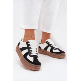 Moderní tenisky z ekokože jsou kombinací stylu a pohodlí. Umístěné na platformě přidávají lehkosti a výšky, poskytují pohodlí během každodenních aktivit. Vyjímatelná pěnová vložka, potažená dalším materiálem, zaručuje měkkost a správnou podporu pro nohu po celý den. Ideální pro každodenní stylizace.