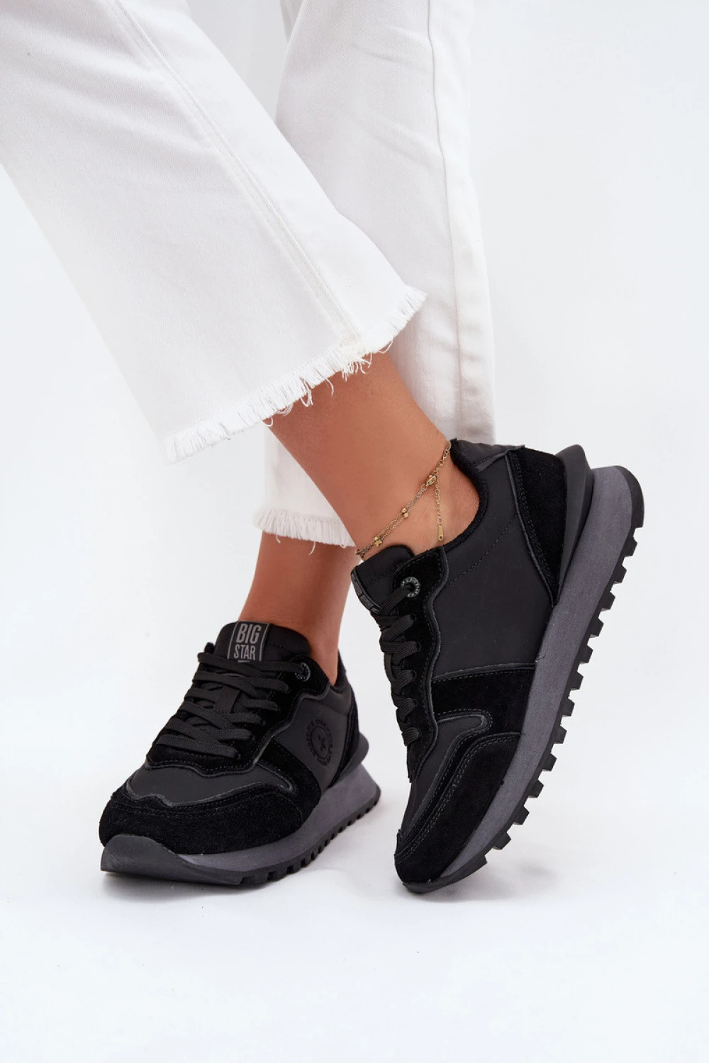 Tenisky značky Big Star pro ženy. Vyrobené z přírodní kůže a semiše, nabízí módní vzhled a jedinečný komfort. Umístěné na platformě poskytují pohodlí a opticky prodlužují nohy. Tento model se vyznačuje inovativní vložkou HI-POLY SYSTEM, vyrobenou z recyklovaných materiálů. Vložka zajišťuje vynikající prodyšnost, účinnou absorpci vlhkosti a tlumení nárazů, což zajišťuje, že boty jsou pohodlné a komfortní po celý den. Navíc je odolná proti opotřebení a deformacím, což zajišťuje jejich dlouhou životnost. Ideální na každodenní nošení.