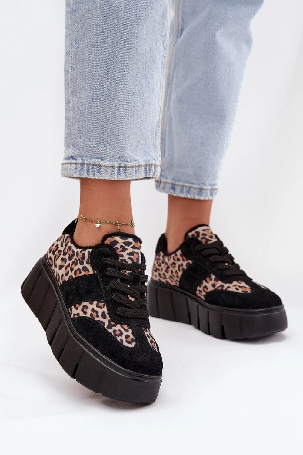 Dámské tenisky od značky Vinceza. Vyrobené z přírodního semiše, umístěné na masivní platformě, která dodává stylový charakter a opticky zjemňuje postavu. Šněrování umožňuje ideální přizpůsobení noze, a vnitřek vyložený fólií zajišťuje pohodlí a teplotu v chladnější dny. Trendy leopardí vzor dodává odvážný, moderní akcent, který přitahuje pohledy. Ideální pro každodenní i výraznější styly.