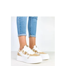 Moderní dámské sportovní boty vyrobené z trvanlivé ekologické kůže, které kombinují funkčnost s módním designem. Model má kulatou špičku, šněrování pro ideální přizpůsobení a pletený prvek vpředu, který botám dodává charakter a jedinečný styl. 5centimetrová platforma zajistí lehkost kroku a pohodlí během chůze, a vnitřek vyrobený z látky zaručuje pohodlí po celý den. Jedná se o stylovou a funkční sportovní obuv, ideální pro každodenní městské outfit.