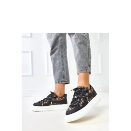 Moderní sportovní boty s nízkým střihem, které se vyznačují stylovými panterovými prvky. Vyrobené z ekologické kůže, kombinují pohodlí a moderní design. Klasický, kulatý špičák a šněrování zajistí dobré přizpůsobení noze a pohodlí při nošení. Model umístěný na stabilní platformě o výšce 4 cm dodává lehkost kroku a zajišťuje, že obuv skvěle vypadá v každodenních stylizacích. Ideální pro ženy, které milují sportovní styl s nádechem dravé elegance.
