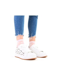 Dámské sportovní boty s moderním, ležérním charakterem vyrobené z ekologické semišové kůže. Model se šněrováním s ozdobnými nitěmi se vyznačuje moderním designem a stylovým provedením. Nízký střih s kulatou špičkou a měkkou textilní stélkou zaručují pohodlí při nošení, zatímco platforma o výšce 3 cm dodává pohodlí a jemně zvedá postavu. Ideální pro každodenní městské stylingy.
