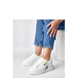 Sportovní boty s potisknutým medvídkem jsou zábavným a stylovým doplňkem pro milovníky originálních doplňků. Vyrobené z odolné ekologické kůže jsou lehké, estetické a snadno se udržují. Kulatá špička zajistí pohodlí a volnost prstů. Nízký model se šněrováním se ideálně přizpůsobí noze a zaručí stabilitu při chůzi. Textilní podrážka zvyšuje pohodlí při nošení po celý den. Platforma o výšce 4,5 cm jemně zvýší postavu, dodá lehkost a moderní charakter. Originální potisk s medvídkem dává obuvi šarm a zajistí, že vyniknete z davu. Ideální pro každodenní mladistvé styly.
