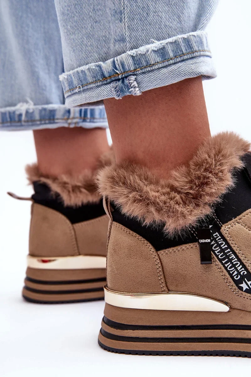 Sportovní obuv na platformě s kožešinou, tmavě béžová Jamarie