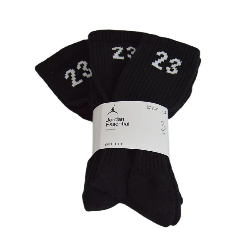 Air Jordan Essentials Crew3 páry Basketbalové sportovní ponožky Black