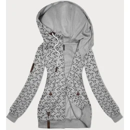 Šedá sportovní mikina s kapucí a se vzorem vlaštovek (2309)