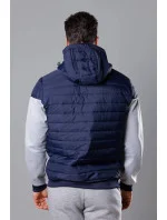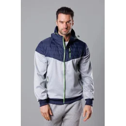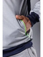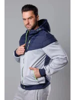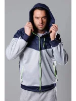 Tmvě modro-limetková pánská sportovní bunda z různých spojených materiálů (8M901-215)