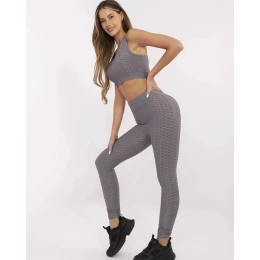 Tmavě šedý dámský sportovní komplet - top a legíny 5448