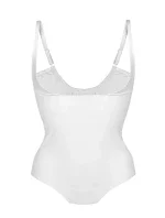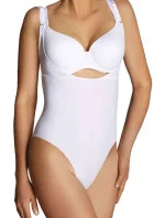 Stahovací body Vincenta white ELDAR - bílá barva - z kvalitního mikrovlákna - tvaruje bříško a hýždě, nezakrývá poprsí - úzká nastavitelná ramínka, v rozkroku zapínání na háčky - kalhotková část bezešvá, střižená laserem - není vidět pod kalhotami nebo šaty přiléhajícími k tělu - poskytuje pohodlí a komfort při nošení