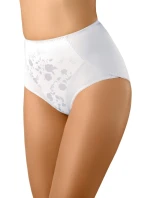 Stahovací kalhotky 148 white BABELL - bílá barva - s vyšší linií pasu - stahují a tvarují bedra a bříško - zdobené jemnou krajkou s květinovým motivem - materiálové složení spodní části : 92% bavlna + 8% elastan