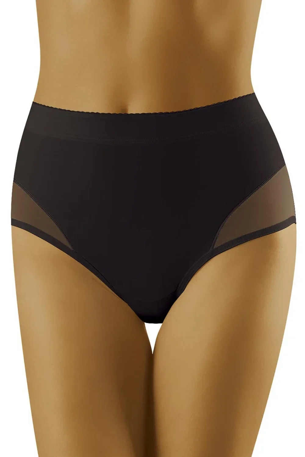 Dámské stahovací kalhotky Adapta black Wol-bar - černá barva - z hladkého mikrovlákna a průsvitné síťoviny - s vyšším pasem - kalhotky obepínají bříško a zvýrazňují linii pasu - velmi pohodlné a příjemné na dotyk