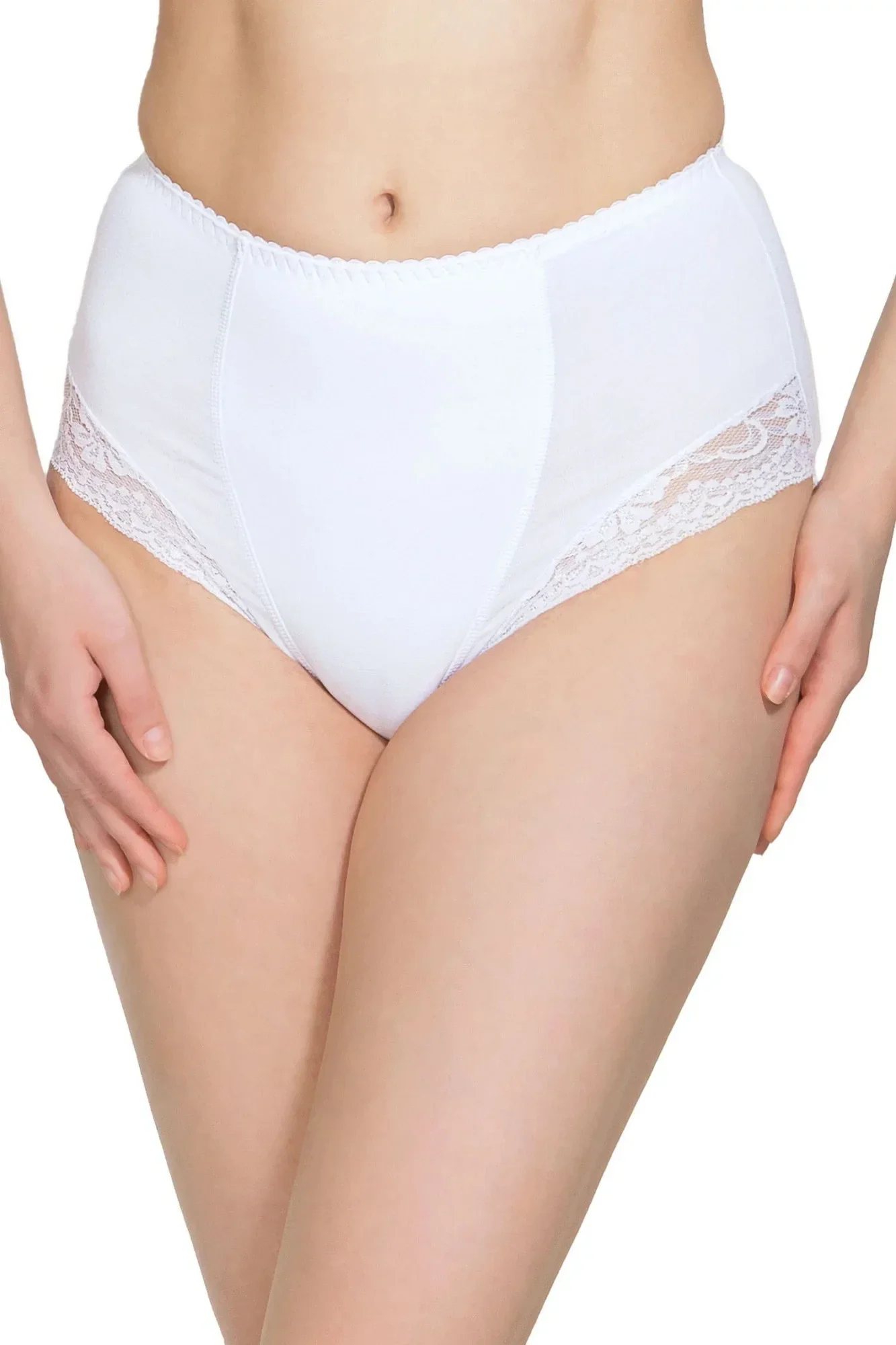 Dámské stahovací kalhotky Ela white plus MITEX - bílá barva - kalhotky mají lehce zvýšený pas - příjemný, pevný materiál - obepnou oblast boků a část bříška - elegantní design - nohavičky jsou lemované krajkou ve stejné barvě - pod oblečením nejdou vidět