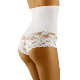 Dámské stahovací kalhotky Preciosa white Wol-bar - bílá barva - vyššího střihu s plochými švy, díky kterým jsou ideální pod oblečení - ve spodní části jsou lemované krajkou s květinovým motivem - velmi silně stahují boky a břicho
