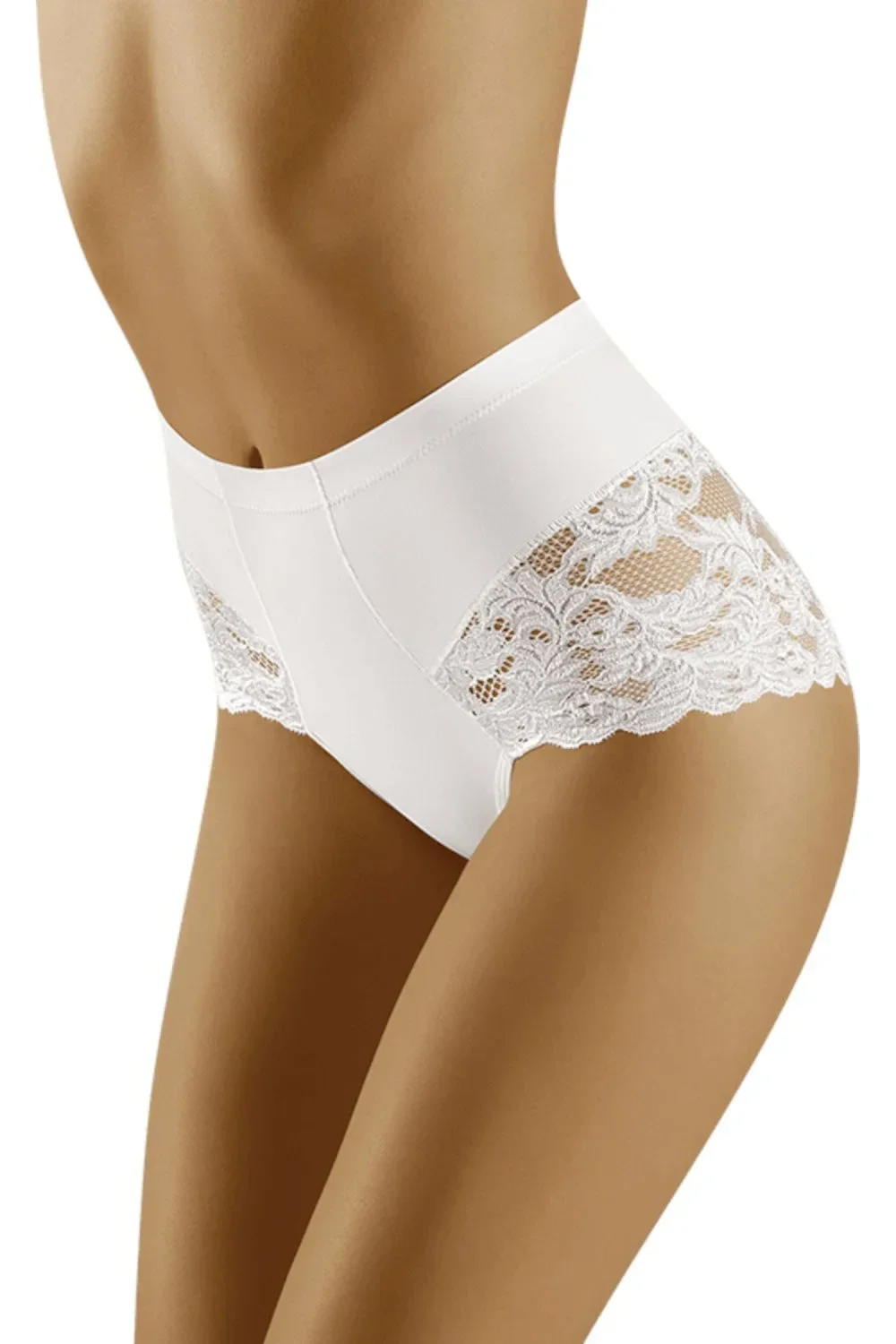 Dámské stahovací kalhotky Slimea Wolbar - vyššího střihu - s plochými švy, díky kterým jsou ideální pod oblečení - na bocích a v zadní části jsou zdobené krajkou s květinovým motivem - velmi silně stahují boky a břicho