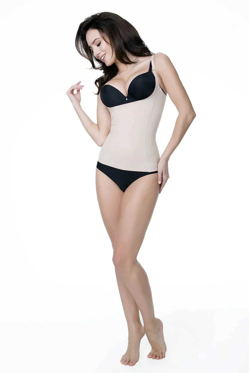 Model se nerýsuje pod oblečením díky moderní bezešvé technologii provedení okrajů technologie INVISIBLE-LINE. Košilka je ušitá z jemného a prodyšného materiálu. Model se ideálně přizpůsobuje postavě. Speciální látkové panely pružně zeštíhlují problémové partie, zeštíhlují bříško a pas. Díky silikonovému pásku se košilka při nošení neposouvá. Ramínka je možné nastavit, ale nelze je odepnout.