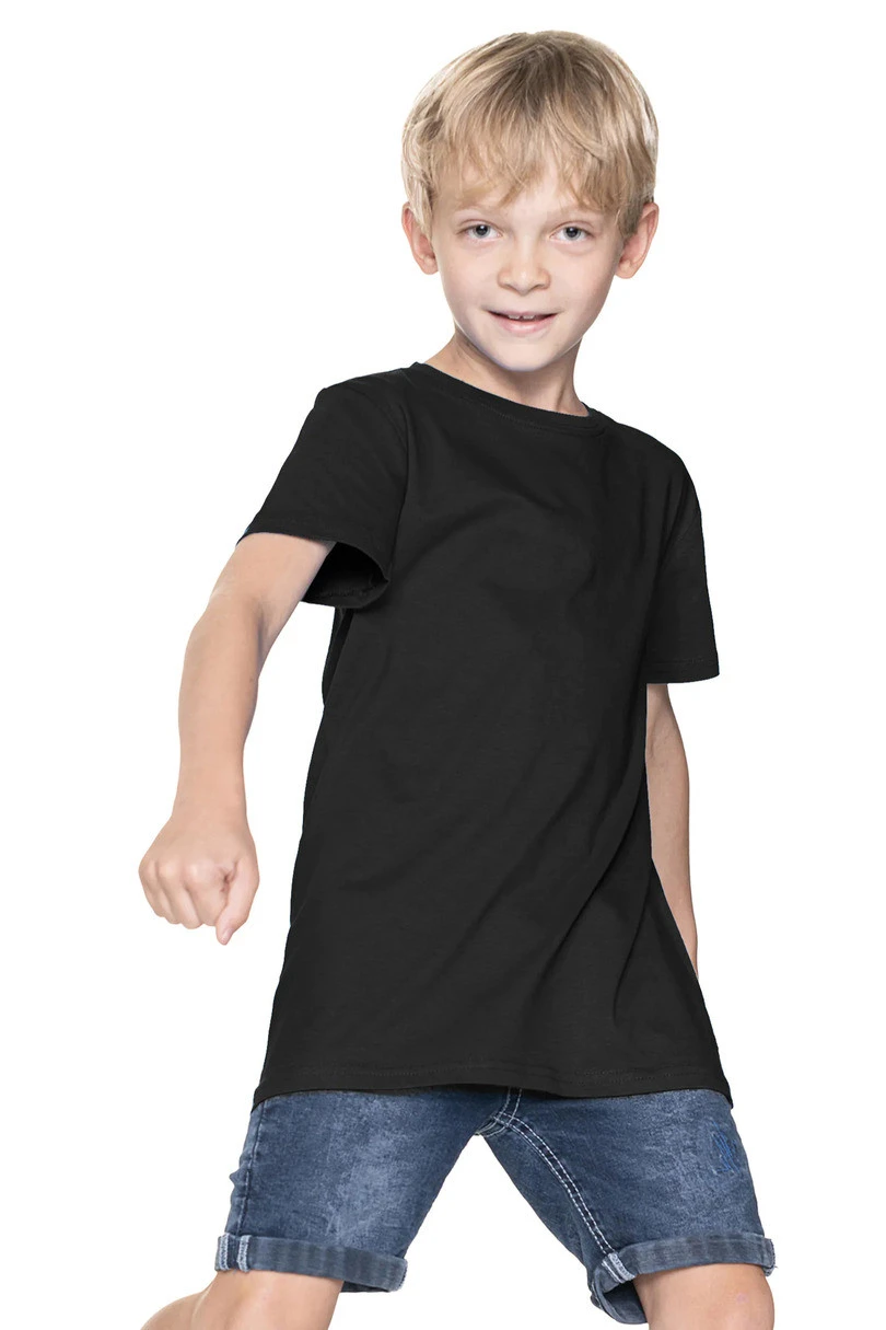Wysokiej jakości t-shirt dziecięcy z krótkim rękawem, uszyty z delikatnej i trwałej dzianiny typu single jersey. Dzięki enzymatycznemu praniu materiał jest idealnie gładki, pozbawiony nierówności, a silikonowe wykończenie sprawia, że koszulka jest niezwykle miękka i przyjemna w dotyku. Klasyczny fason zapewnia swobodę ruchów, a trwały dekolt wykończony dwuwarstwowym ściągaczem z dodatkiem elastanu gwarantuje dłuższą żywotność. Kark oraz ramiona zostały wzmocnione kontrastową taśmą stabilizującą, co wpływa na zwiększoną wytrzymałość szwów. Boczne szwy i podwójne gęste przeszycia z wysokiej jakości nici to gwarancja solidności na dłużej. To idealny wybór na co dzień – zarówno do szkoły, przedszkola, jak i na aktywną zabawę na świeżym powietrzu.