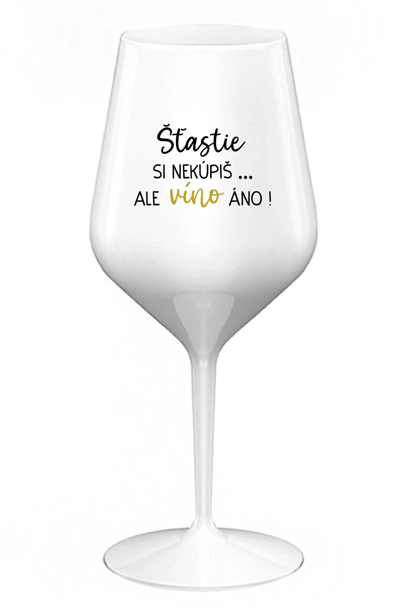 ŠTĚSTÍ SI NEKOUPÍŠ...ALE VÍNO JO! - biely nerozbitný pohár na víno 470 ml