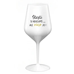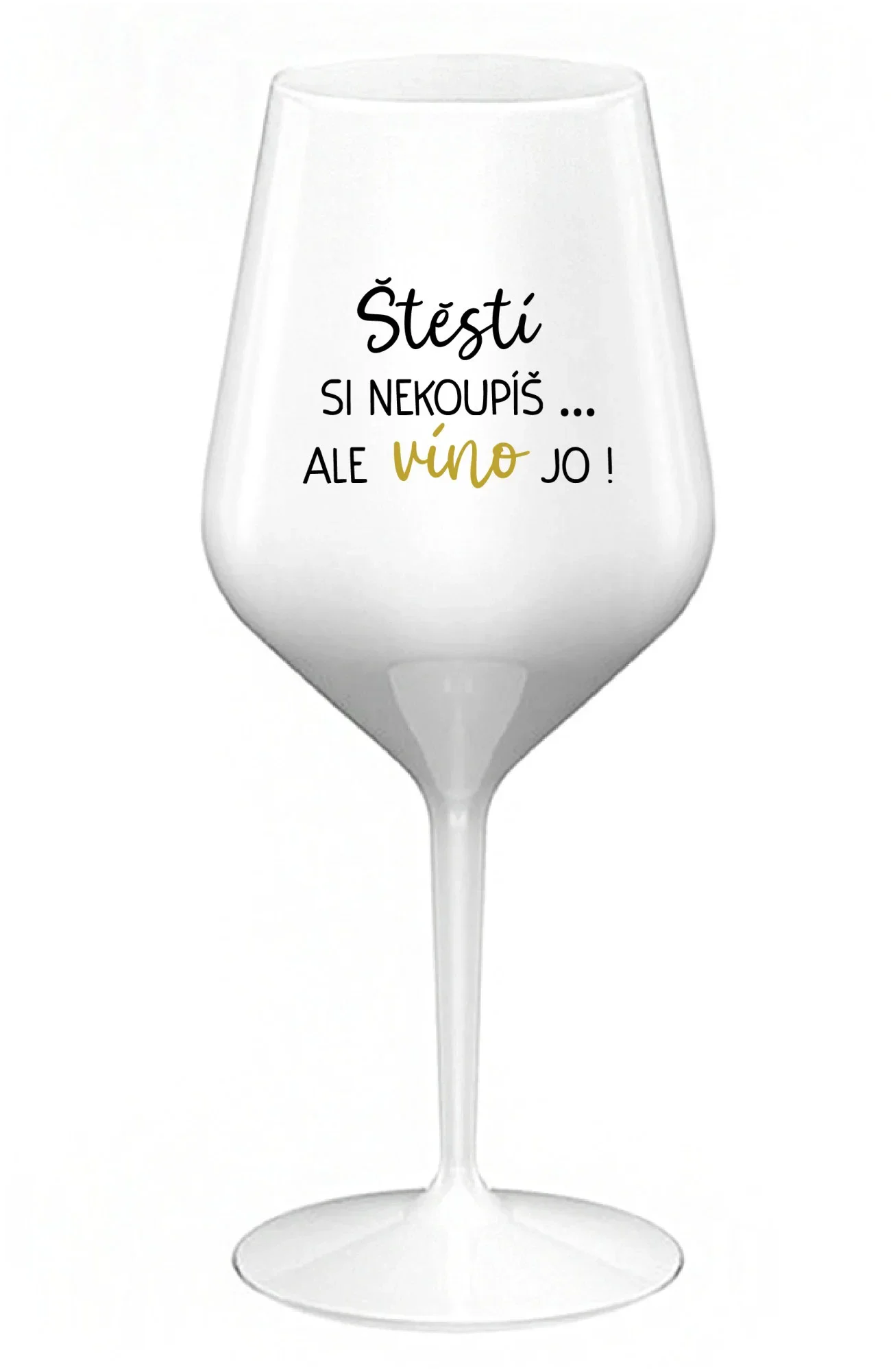 ŠTĚSTÍ SI NEKOUPÍŠ...ALE VÍNO JO! - bílá nerozbitná sklenice na víno 470 ml