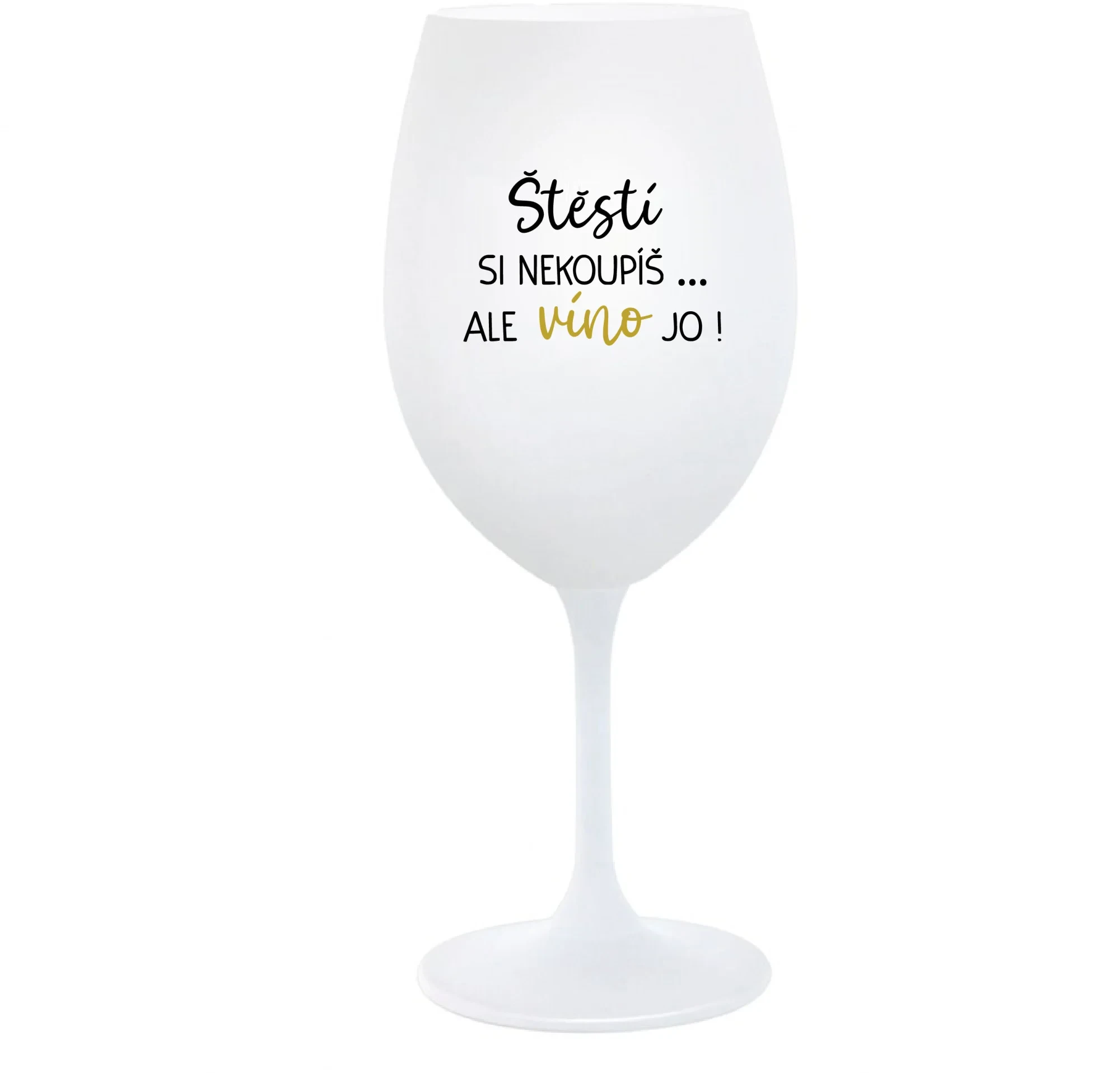 ŠTĚSTÍ SI NEKOUPÍŠ...ALE VÍNO JO! - bílá sklenice na víno 350 ml