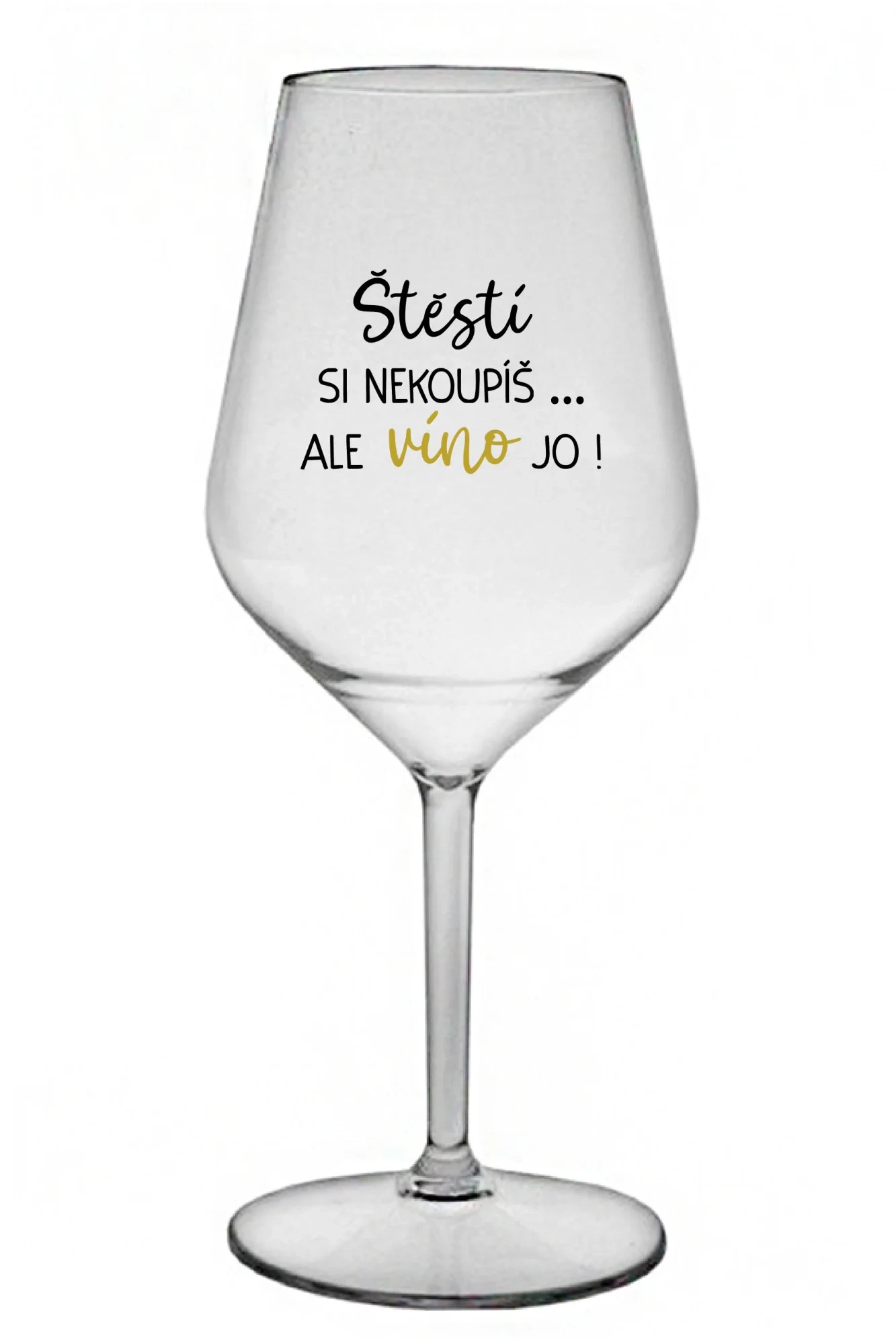 ŠTĚSTÍ SI NEKOUPÍŠ...ALE VÍNO JO! - čirá nerozbitná sklenice na víno 470 ml