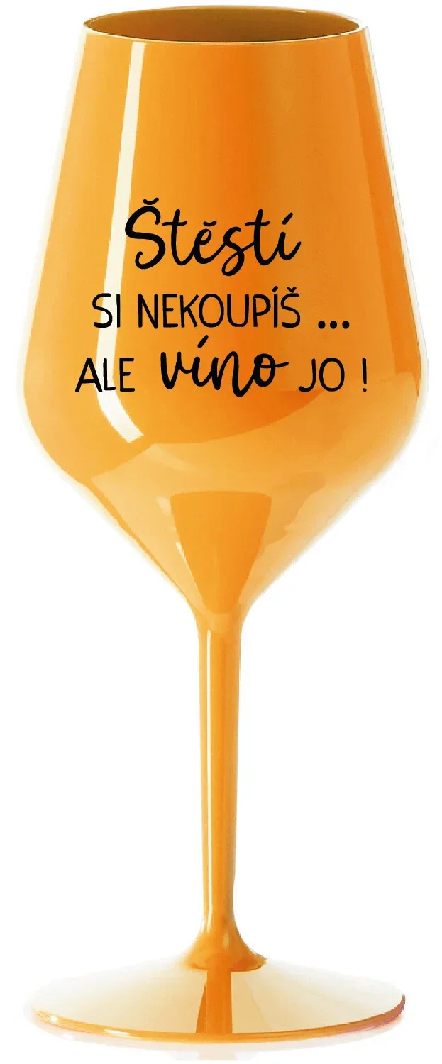 ŠTĚSTÍ SI NEKOUPÍŠ...ALE VÍNO JO! - oranžová nerozbitná sklenice na víno 470 ml