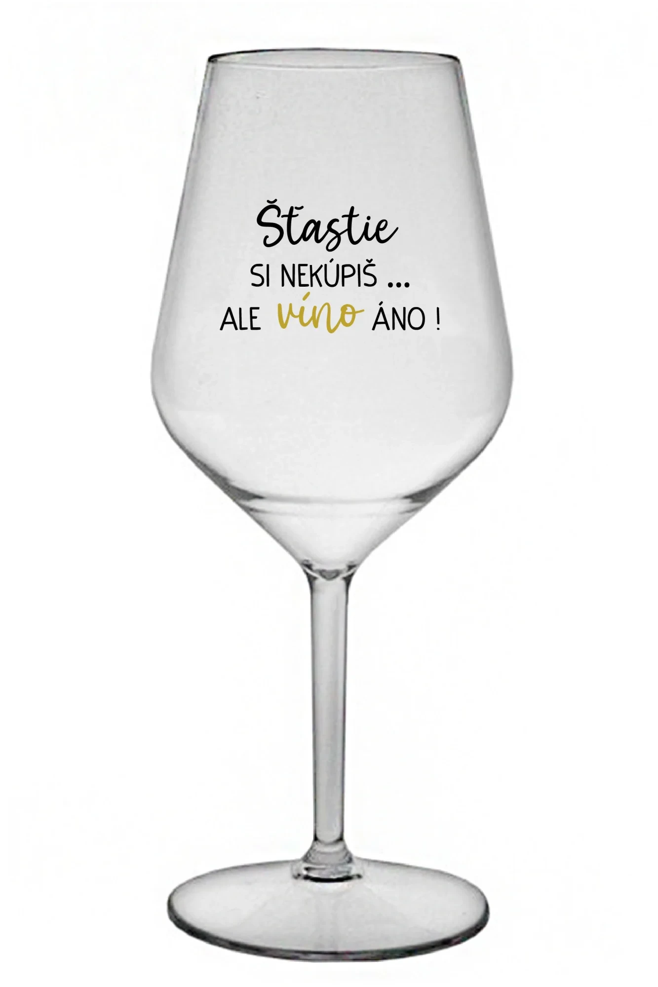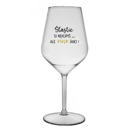 ŠTĚSTÍ SI NEKOUPÍŠ...ALE VÍNO JO! - priehľadný nerozbitný pohár na víno 470 ml