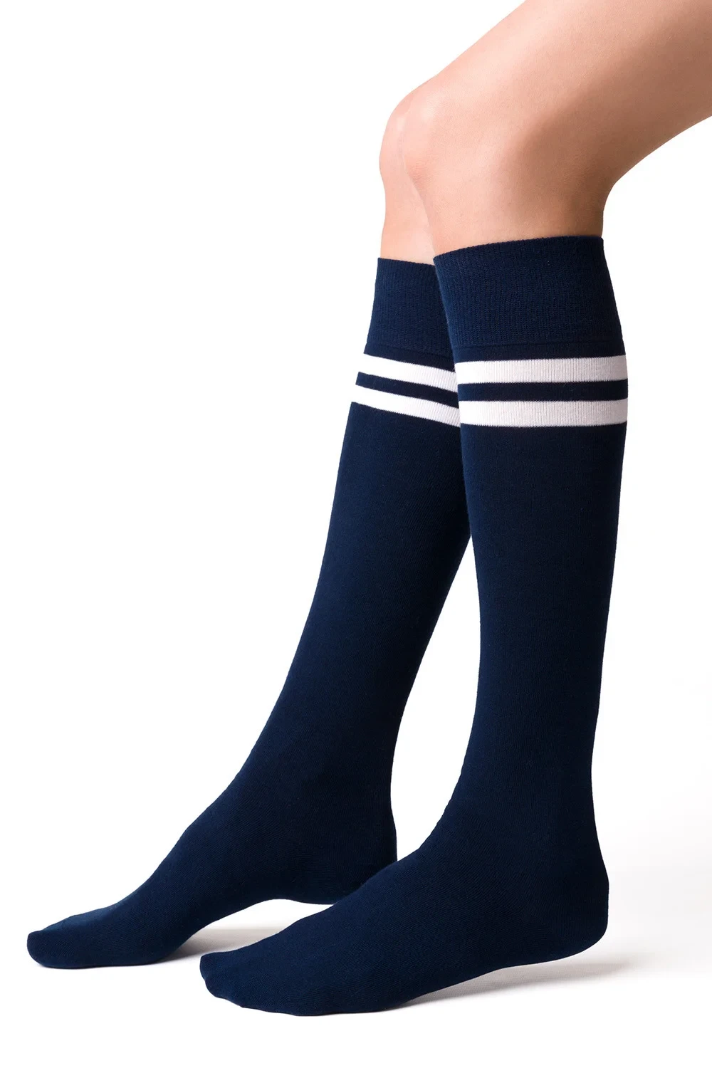Punčochové zboží značky Steven. Model 072 bavlna s pruhy. Výrobek je vyroben ze 70 % z bavlny, 27 % z polyamidu a 3 % z elastanu. Výrobek pro ženy.