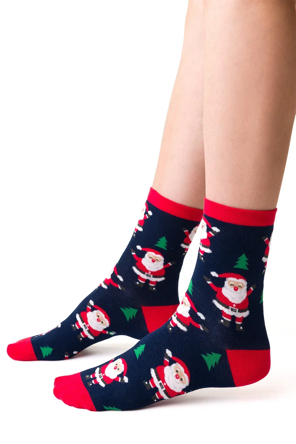 Ponožky značky Steven. Veselé Vánoce 136 model. Výrobek je vyroben ze 78 % z bavlny, 14 % z polyamidu, 5 % z polypropylenu a 3 % z elastanu. Výrobek pro ženy.