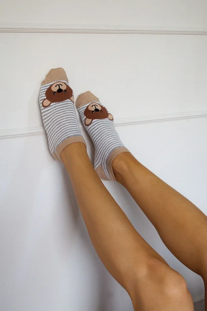 Vyjádřete svůj styl s těmito rozkošnými dámskými pruhovanými ponožkami s medvídky! Tyto jedinečné ponožky kombinují pohodlí s jedinečným designem – velcí roztomilí medvídci a jemné proužky jim dodávají originální vzhled. Jsou vyrobeny z měkké bavlny a poskytují vynikající prodyšnost a pohodlí po celý den. Díky elastickému lemu ponožky dokonale padnou na nohu – jsou ideální pro každodenní styling – do tenisekós i pro domácí relaxaci.