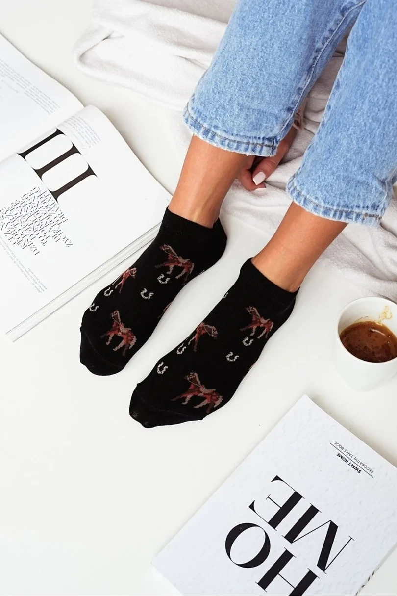 Roztomilé dámské koníčky! Jsou vyrobeny z měkké a prodyšné bavlny a poskytují pohodlí a komfort po celý den. Jejich jedinečný koňský vzor dodá charakter každému oblečení, takže jsou ideální volbou pro milovníky zvířat a přírody. Elastická tkanina zajišťuje dokonalé přizpůsobení, zatímco díky lehké konstrukci jsou ideální pro všechna roční období. Skvěle se hodí k teniskám, cvičkám i běžné obuvi.