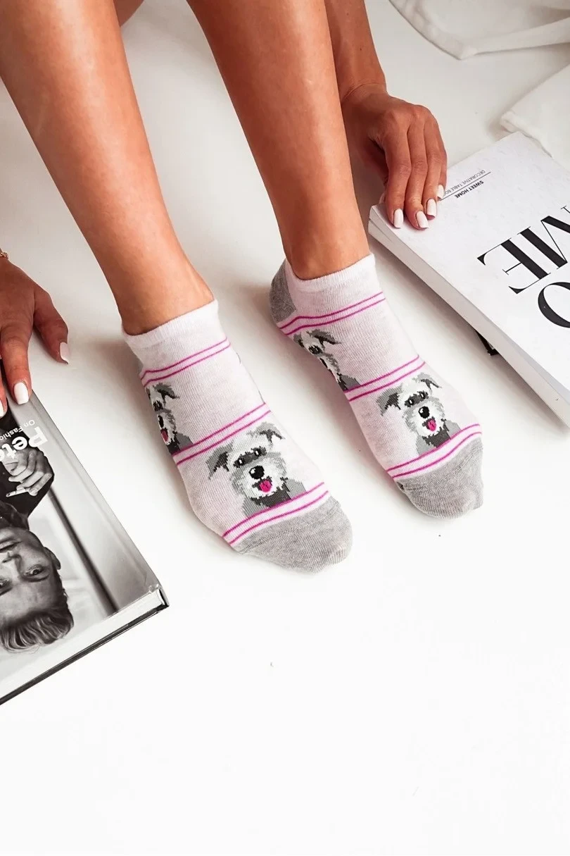 Dámské ponožky Psi Snauzers jsou ideální volbou pro milovníky čtyřnohých mazlíčků! Jsou vyrobeny z vysoce kvalitní bavlny, jsou měkké, prodyšné a mimořádně pohodlné. Roztomilý vzor zobrazující Snauzers dodává ponožkám jedinečný charakter, který každodennímu oblečení dodá nádech zábavy a originality. Díky elastickému materiálu ponožky dokonale přilnou k nohám a zajistí pohodlí po celý den. Jsou ideální k teniskám, cvičkám i ležérní obuvi.