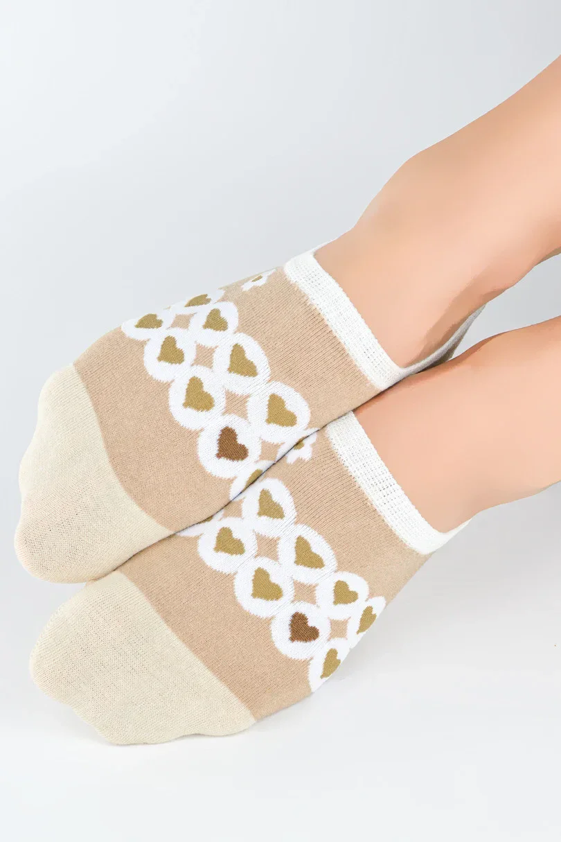 Stopki charakteryzują się wzorzystym, kobiecym designem, który doskonale komponuje się z codziennymi stylizacjami. Elastyczny ściągacz zapobiega zsuwaniu się, a oddychający materiał sprawia, że są idealne na cieplejsze dni. To doskonały wybór do trampek, sneakersów czy balerinek.